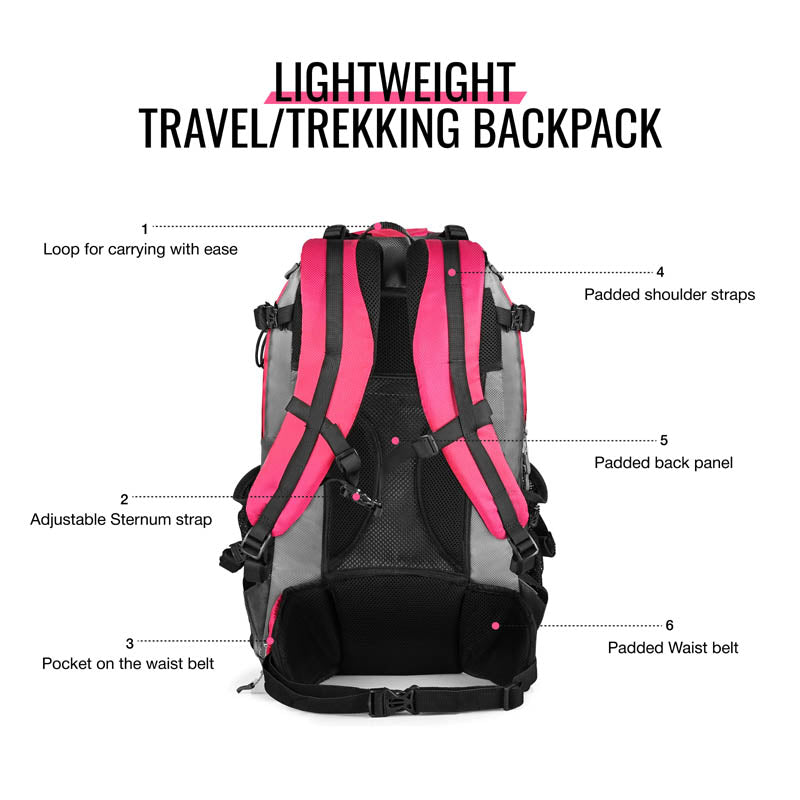 - Adjustable padded waist belt for load control and improved balance