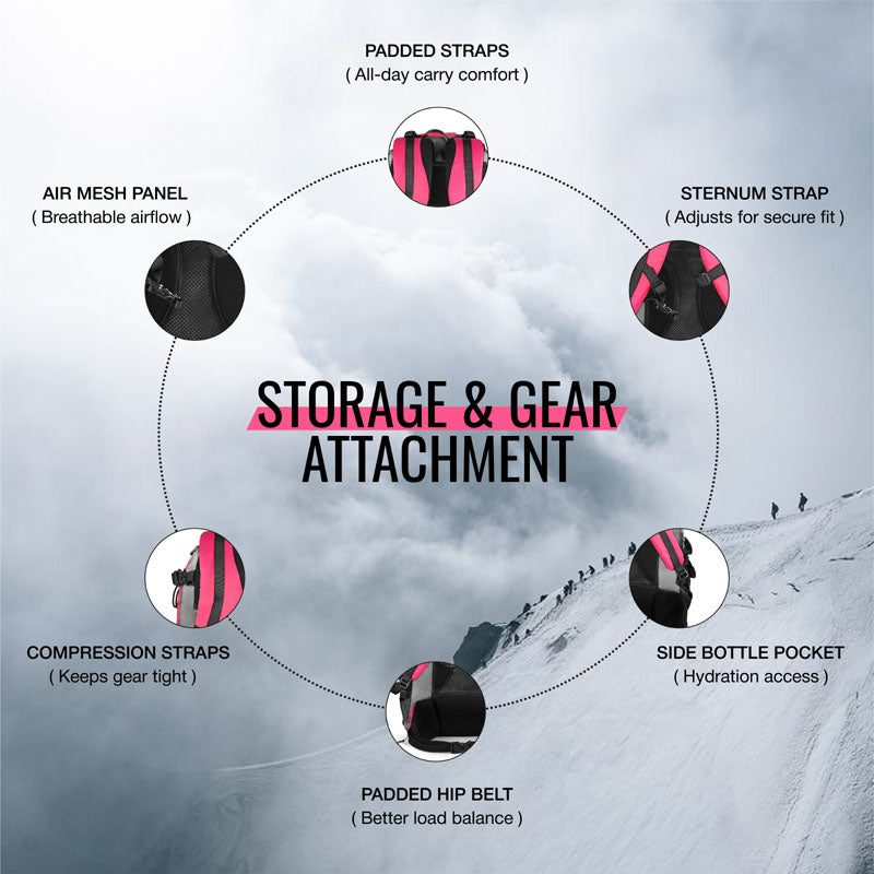 - Ice axe and trekking pole loops for technical gear